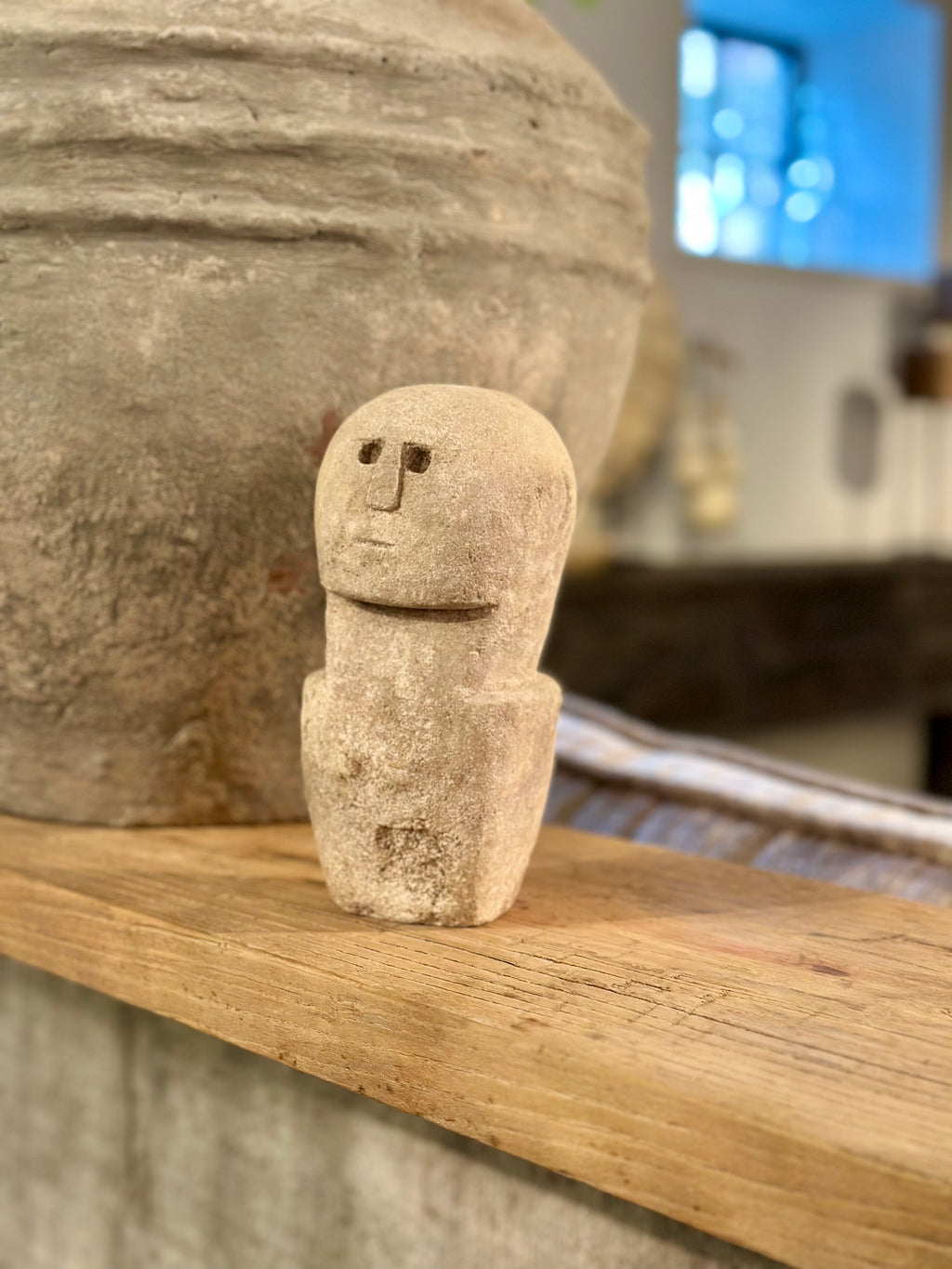Dit leuke beeldje van zandsteen is een geluksbrengertje, dit geef je aan iemand cadeau die je het beste wenst. Het is handgemaakt met een pure en natuurlijke uitstraling, doet ‘ie denken aan de paaseiland beelden. Leuk in een glazen stolp, op een plankje of in een vakkenkast.