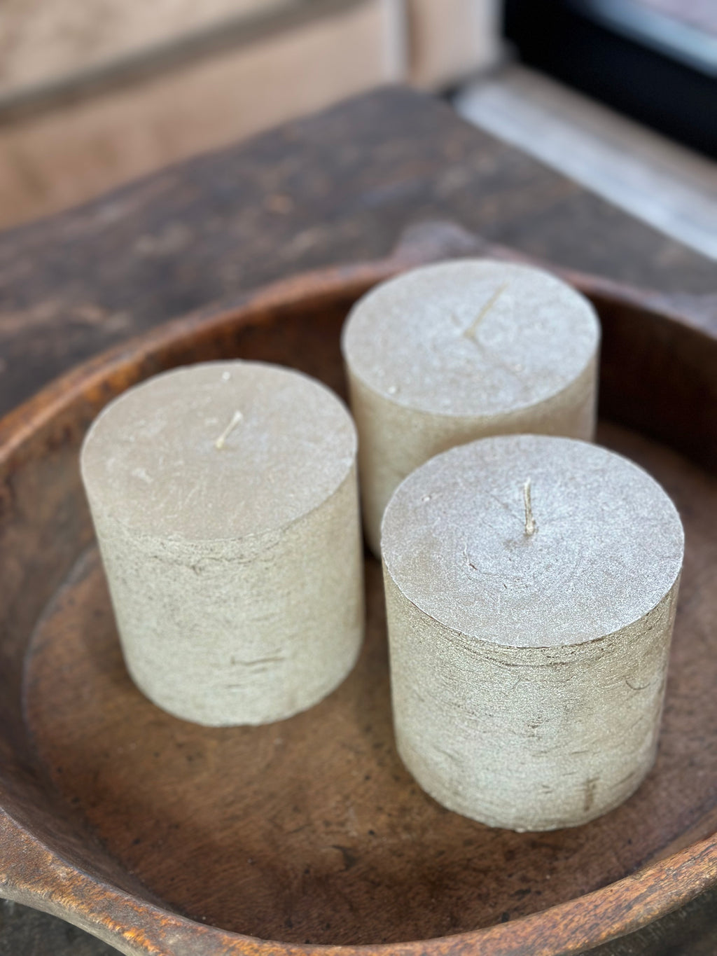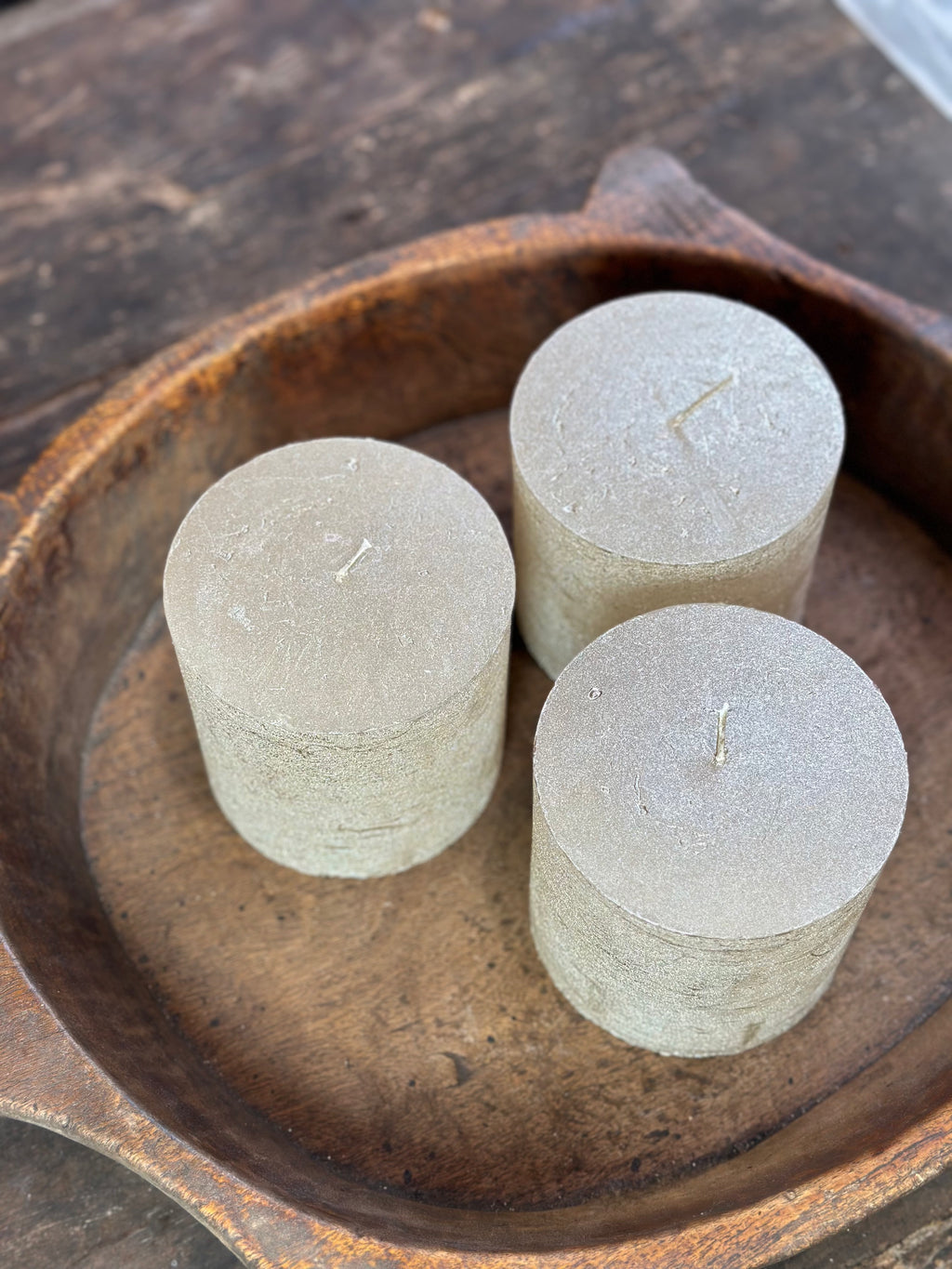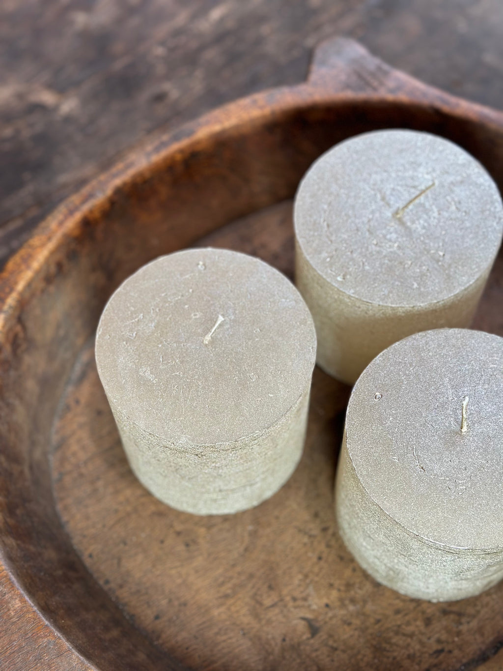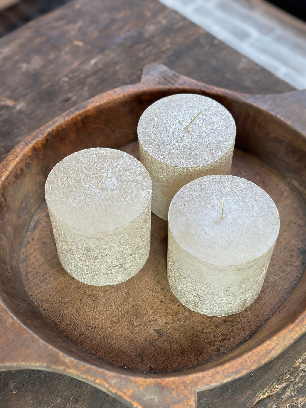 Dezelfde mooie champagne metallic‑look als de grotere variant, maar iets meer compact: 10×10 cm. Brandduur is ongeveer 110 uur. Perfect als combinatie met de andere kaarsen in een schaal of als losse sfeermaker.