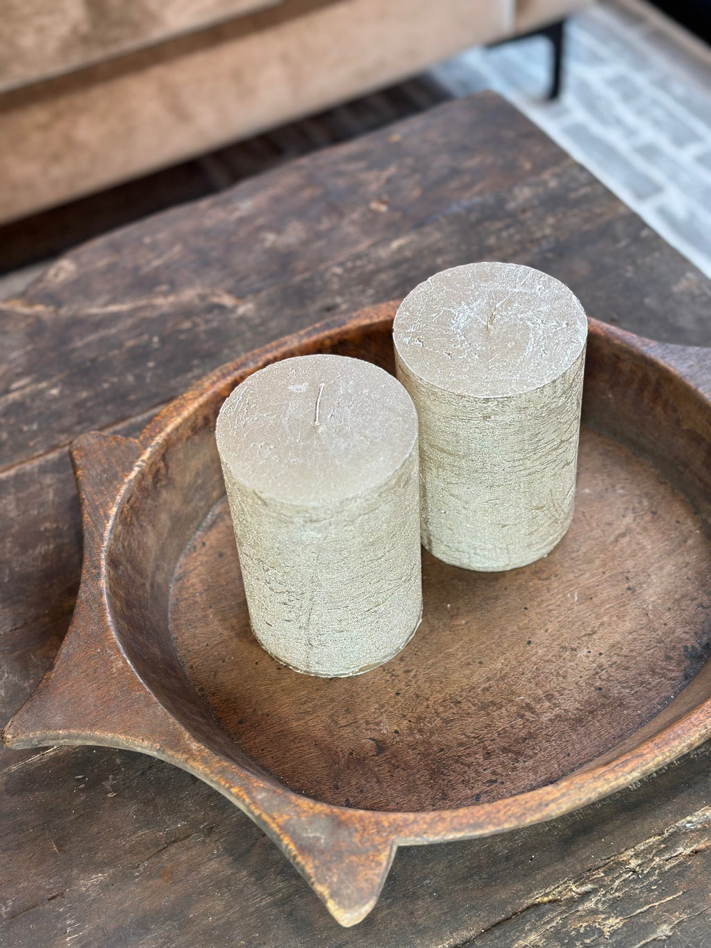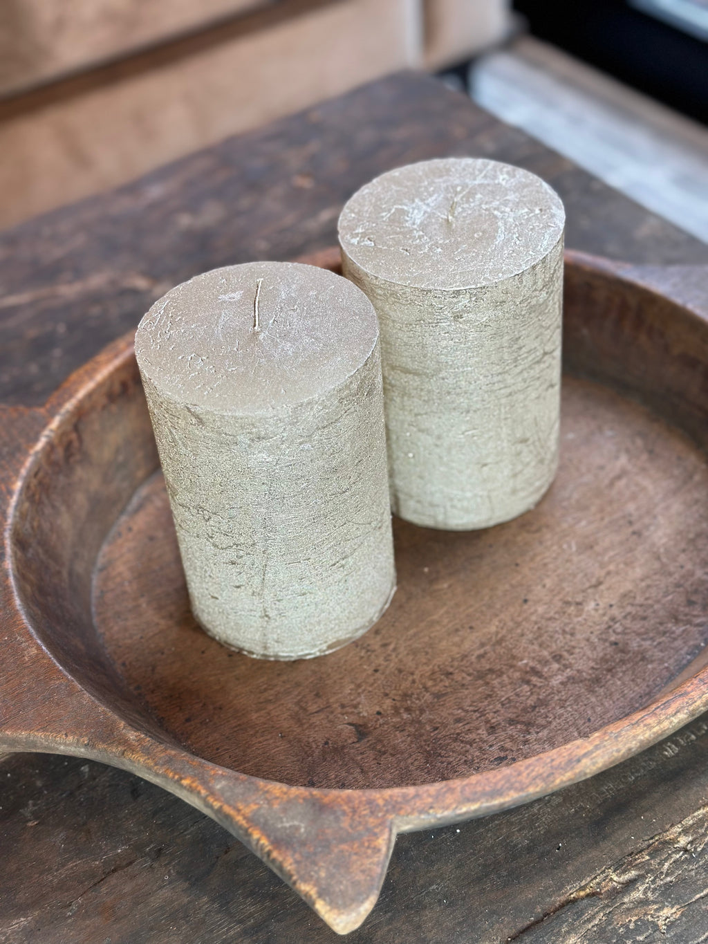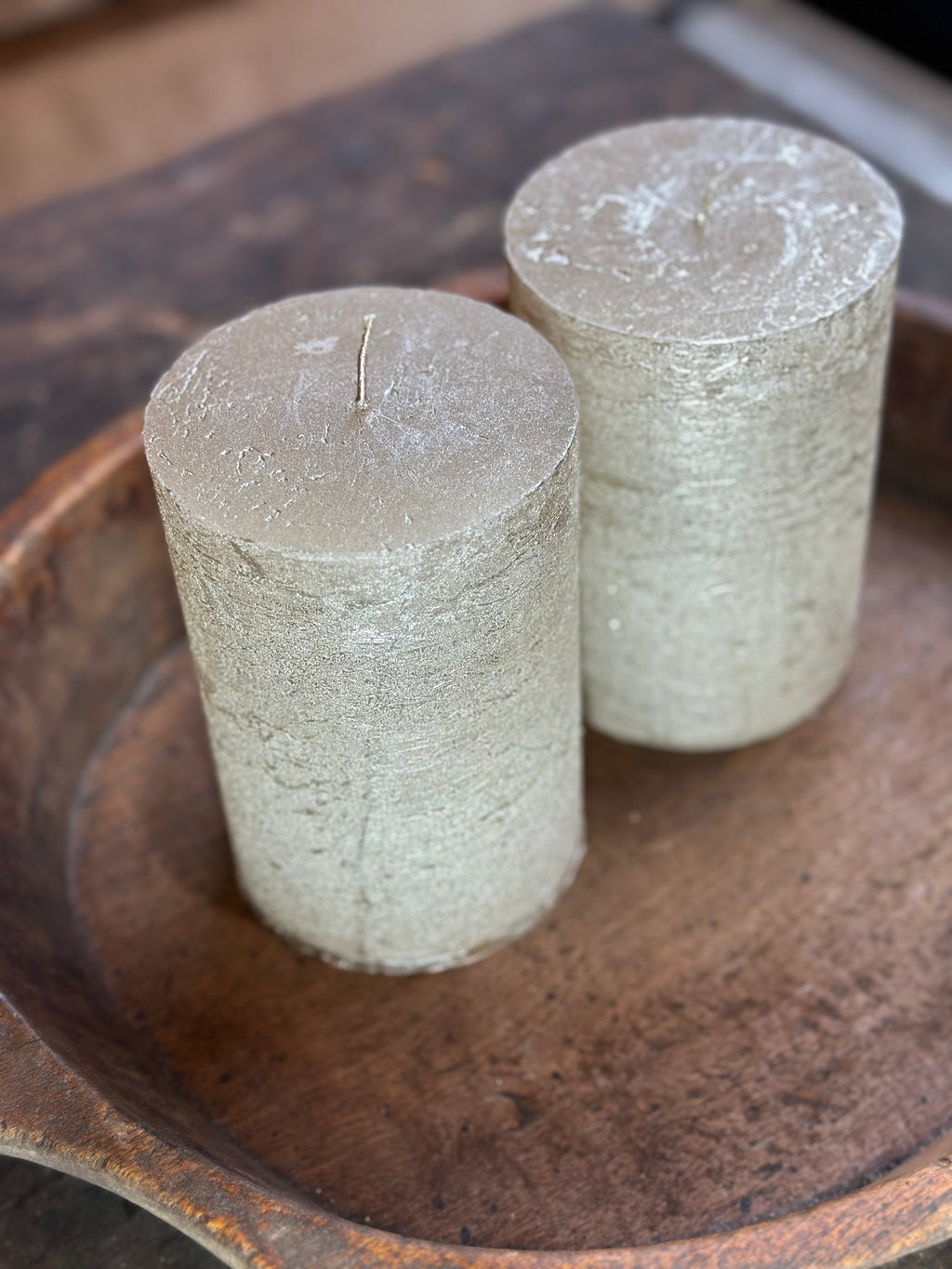 Deze elegante cilinderkaars heeft een champagnekleurige metallic‑glitter afwerking, die doet denken aan de zachte parelmoer van een oester. Met zo’n 120 uur brandplezier is gaat de kaars lang mee! Let op die eerste keer aansteken: laat het waxrandje volledig smelten om een ‘memory‑ring’ te voorkomen.