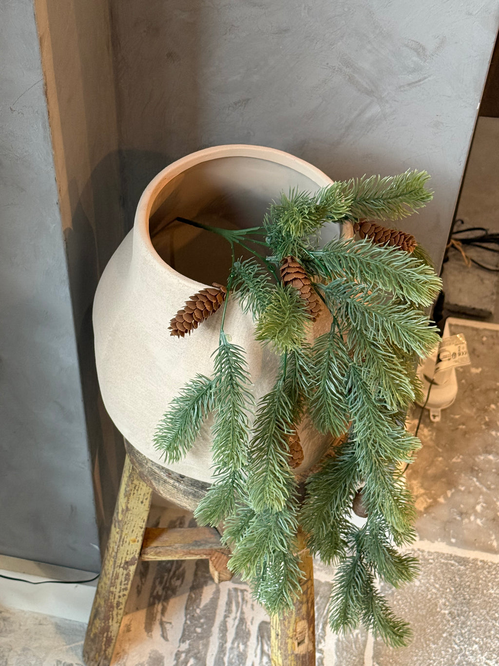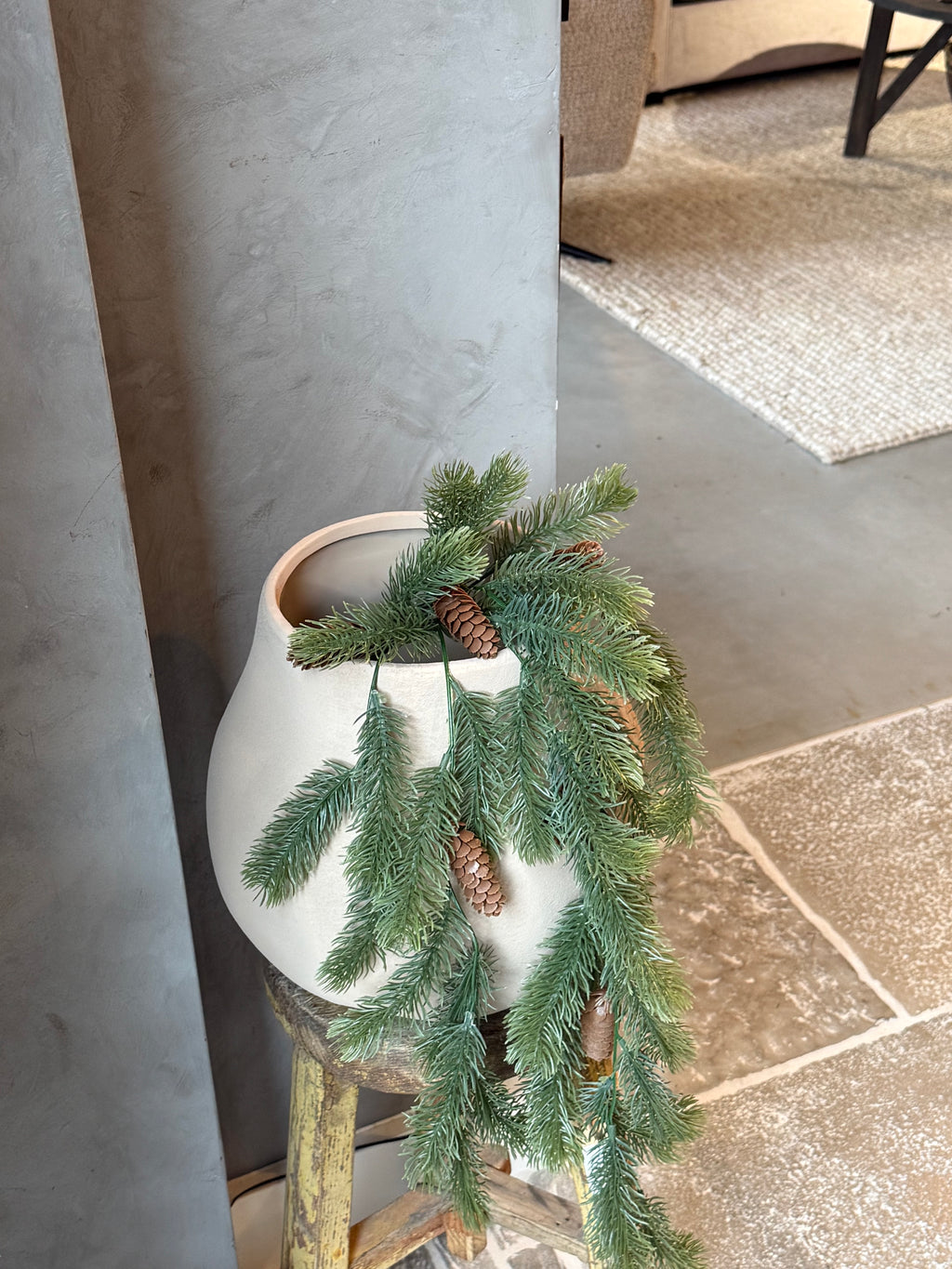 Deze kunsttak is 80 cm lang en bevat dennentakjes met kleine dennenappels erin verwerkt. Je kunt hem gebruiken om neer te leggen of op te hangen. Doordat hij vormbaar is kun je de breedte aanpassen naar zo’n 20 tot 40 cm.