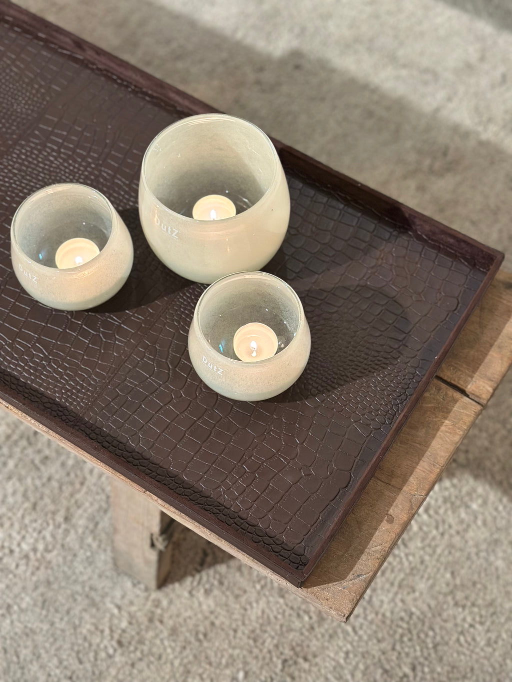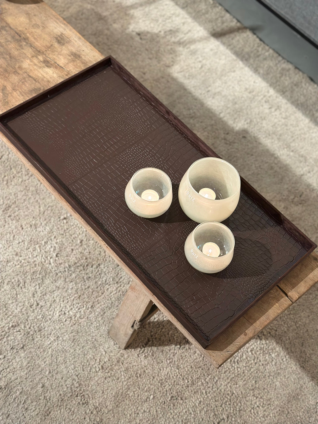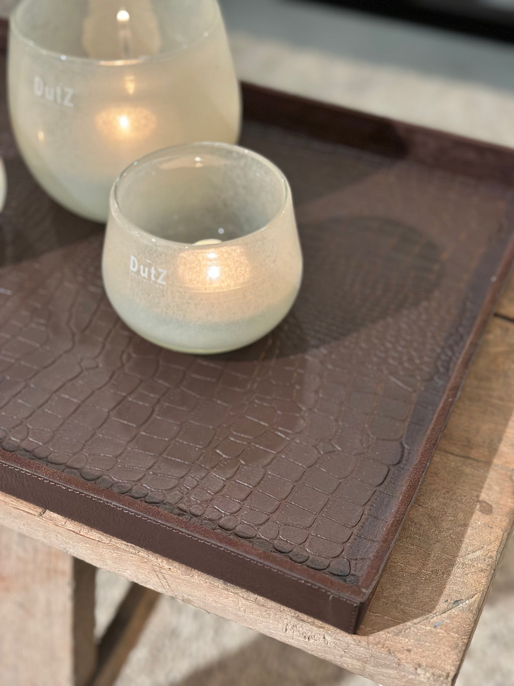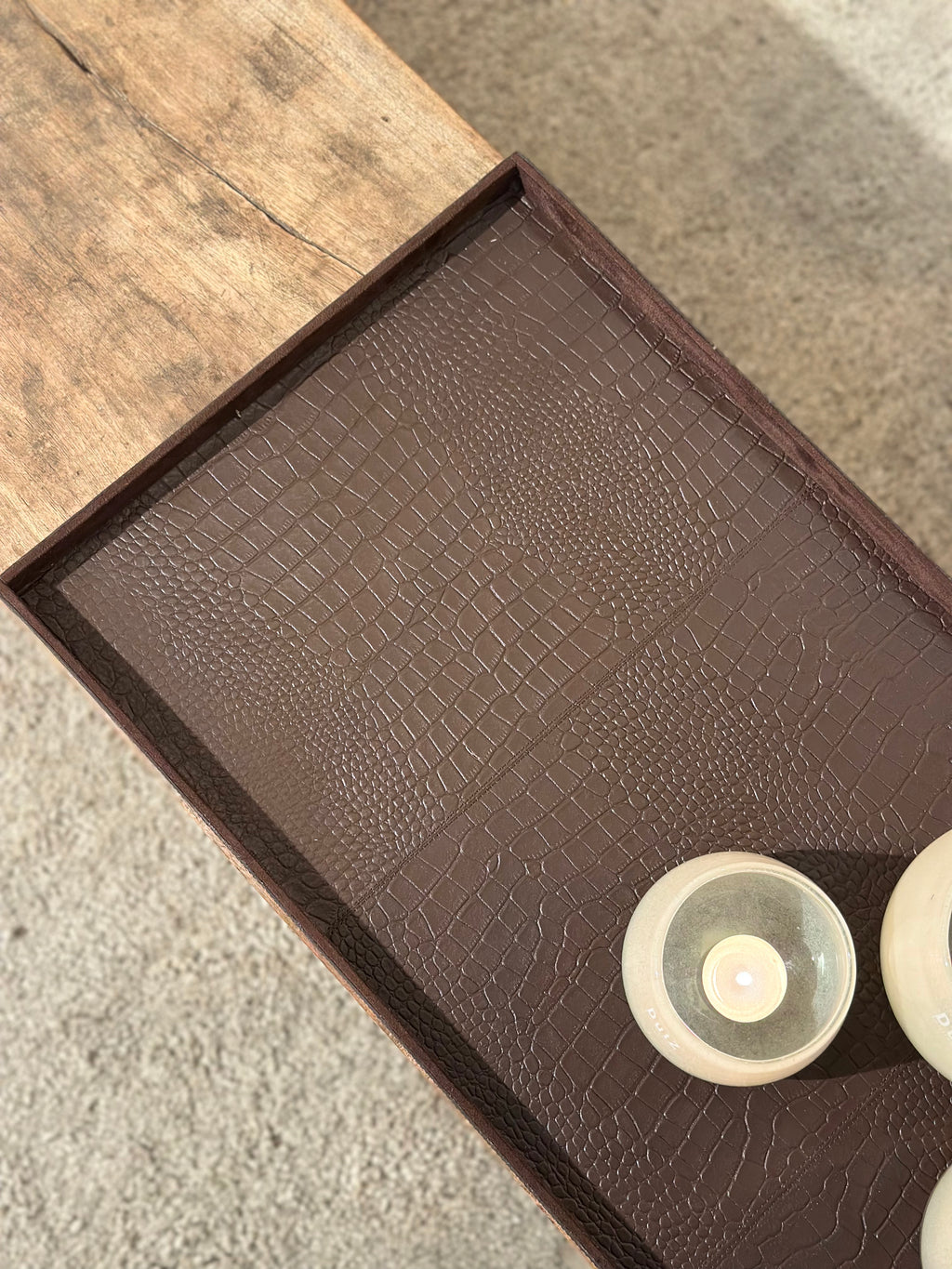 Deze grote rechthoekige variant is ideaal voor op een royale salontafel of dressoir. De donkerbruine krokoprint geeft het dienblad een warme, stoere uitstraling.