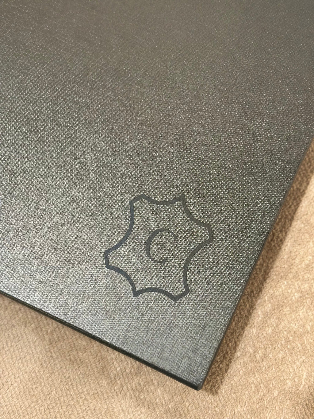 De onderzijde is afgewerkt met vilt en het leer is makkelijk te reinigen met een vochtige doek. Wordt geleverd in een zwarte luxe giftbox.