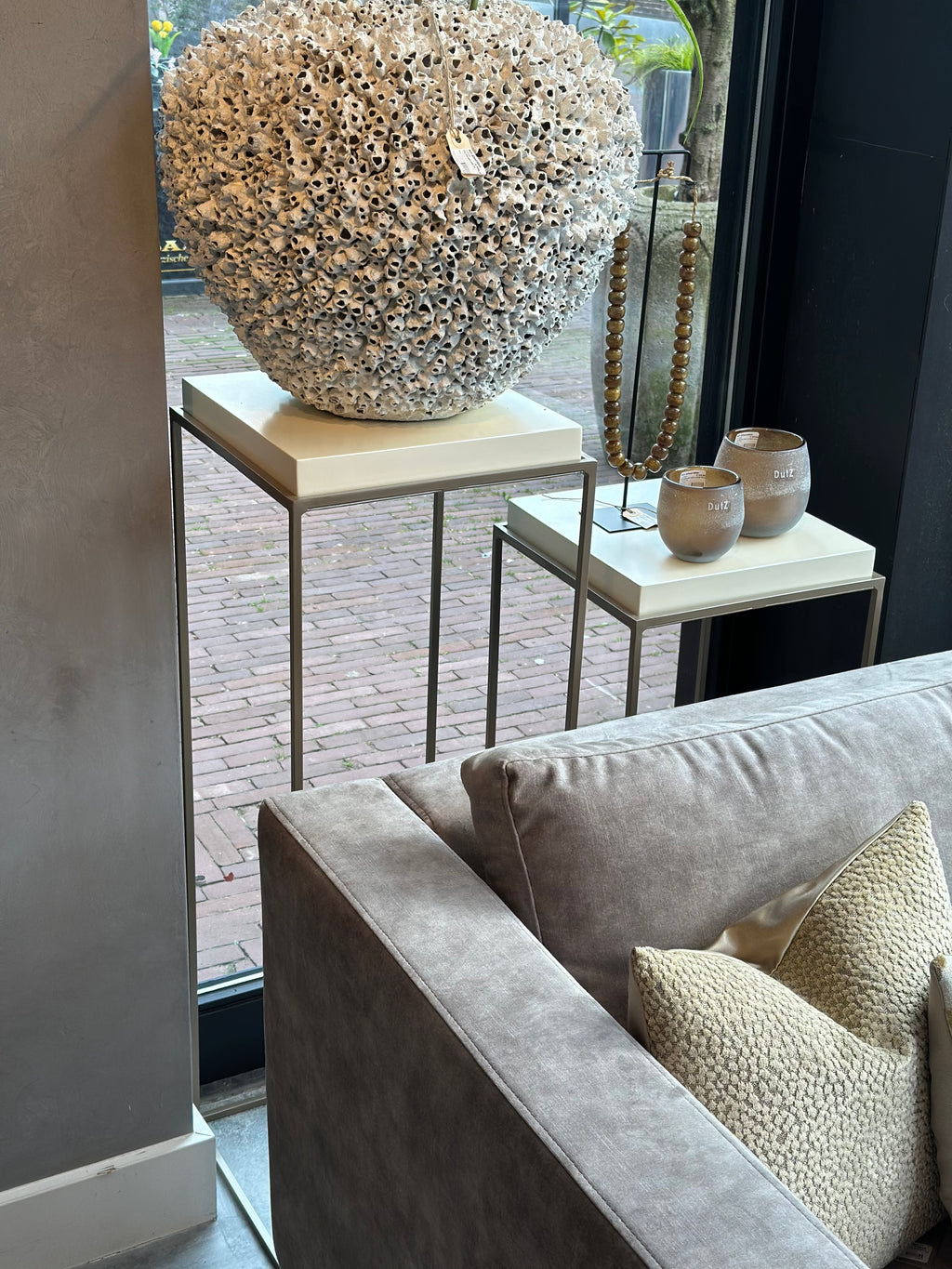 De zuil is een mooie manier om een bijzonder accessoire, een vaas of een windlicht extra aandacht te geven. Zo krijgt een item echt een eigen plek in het interieur.