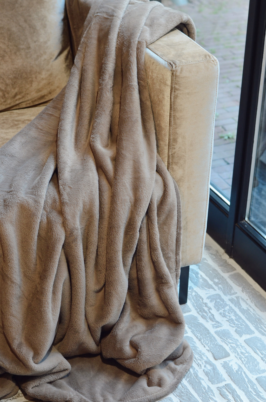 Een heerlijk zacht plaid in een warme taupekleur. De structuur doet denken aan fleece, maar met net wat meer flair. Perfect om over een armleuning te draperen of als extra dekentje op je bank.