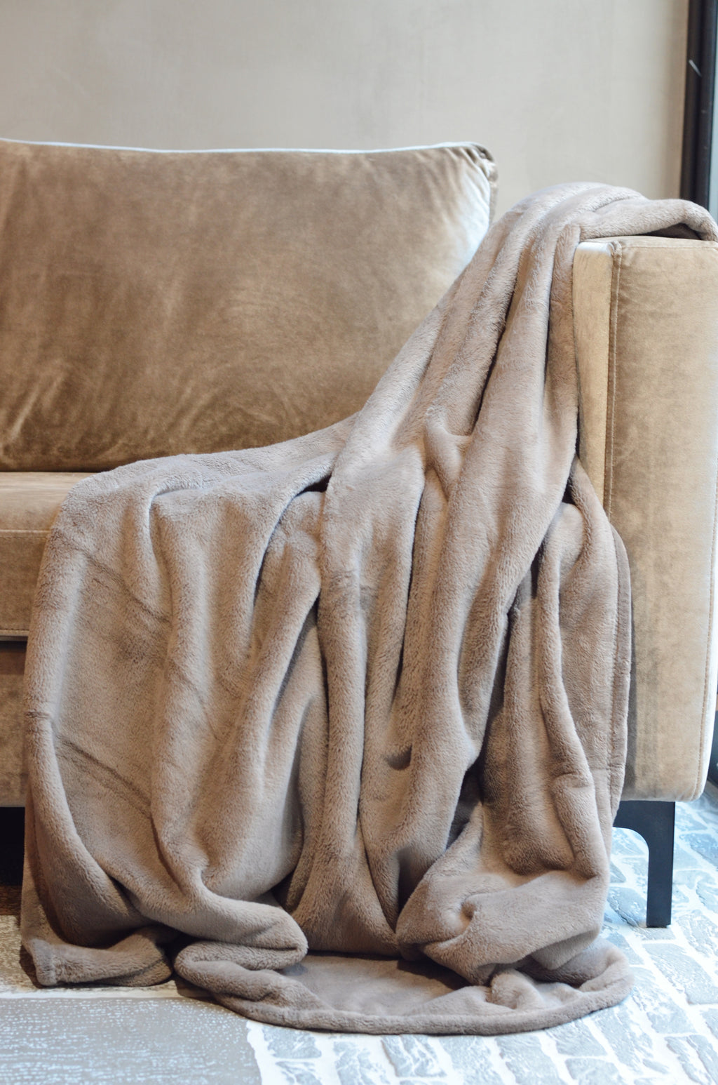 Taupekleurig fluffy plaid – 130 × 180 cm
