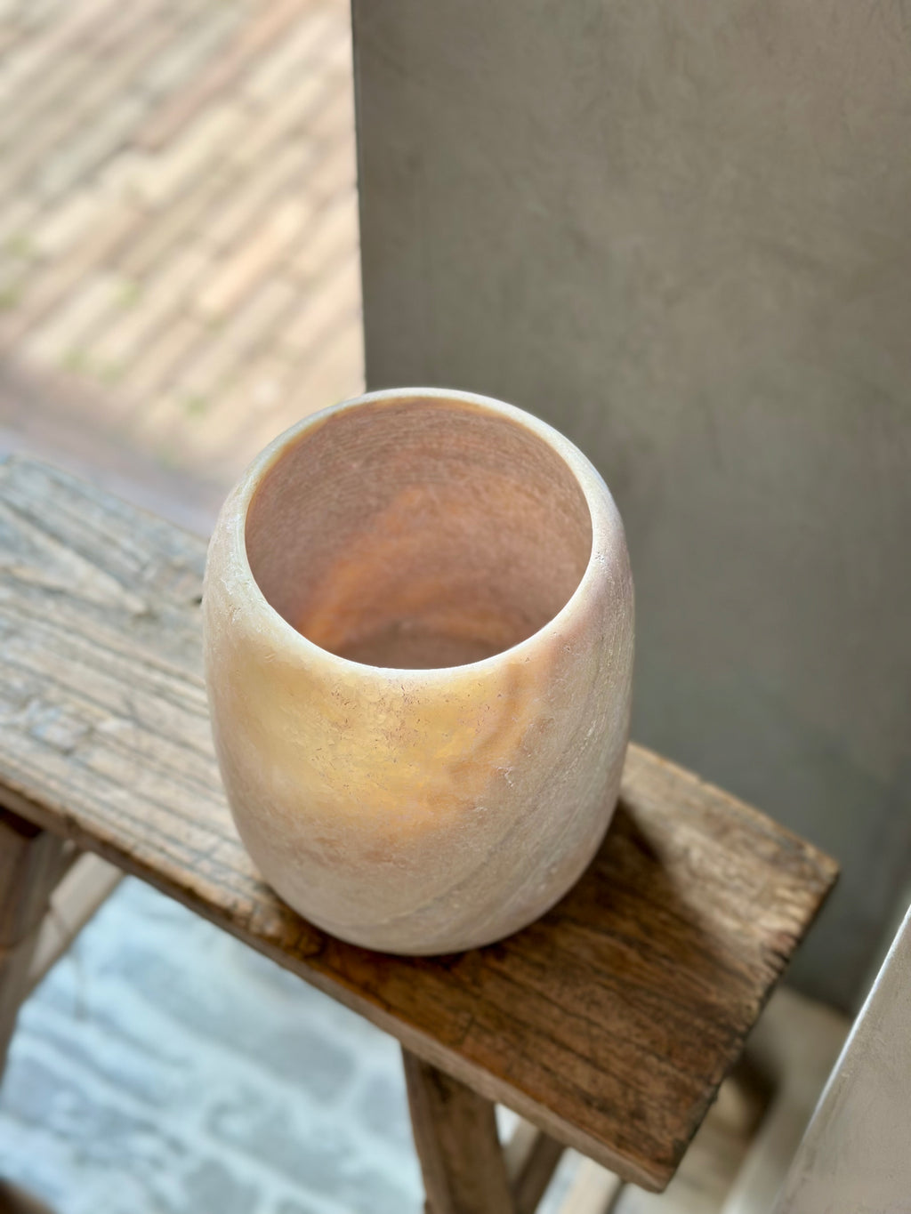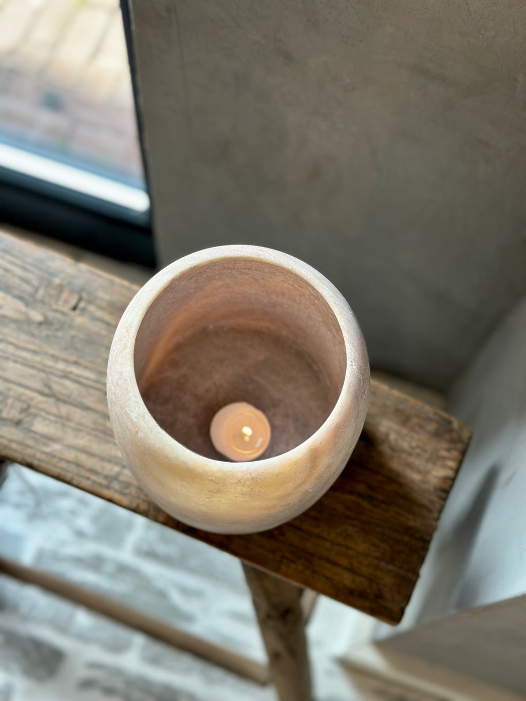 Met een kaarsje erin geeft het albast een rustige en warme lichtgloed. Door de natuurlijke eigenschappen van het materiaal is ieder windlicht uniek.